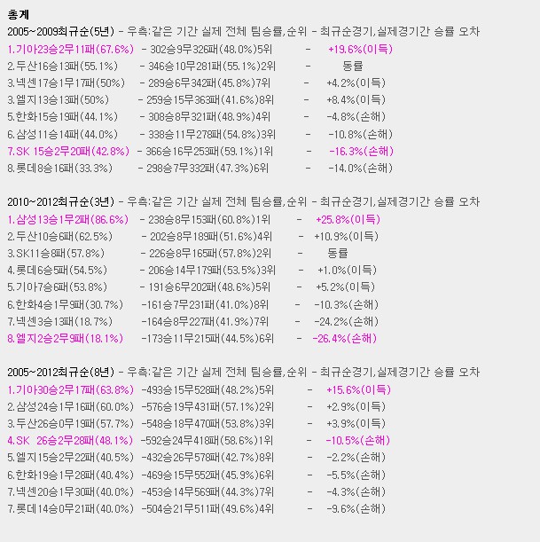 특히 2005~2009는 정말로 할 말이 없네요... 0