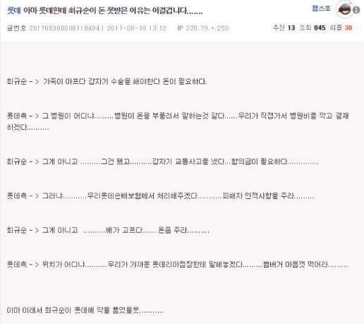 | Subject | 최규순이 롯데한테 돈 못 받은 이유. |