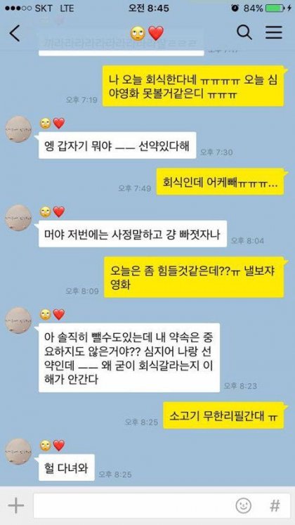 Subject   회식가지말라는 여자친구..