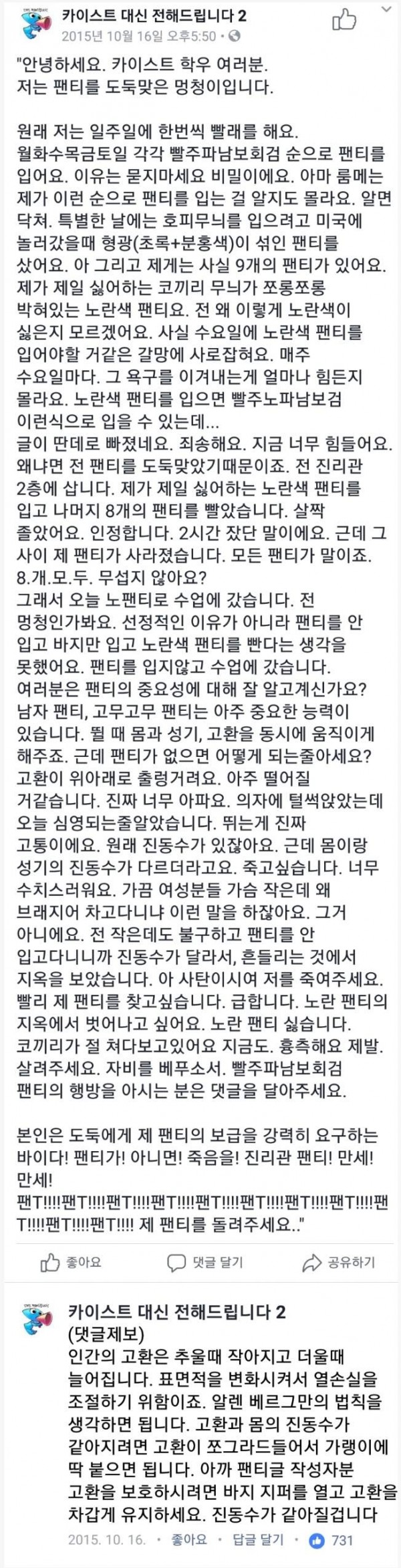 | Subject | 팬티를 도둑맞은 카이스트생 |