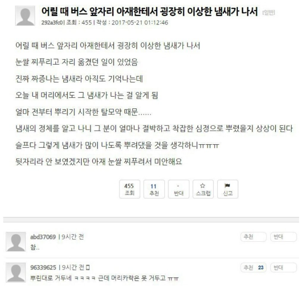 - 유머가 아닌 펌글, 영상 등 가볍게 볼 수 있는 글들도 게시가 가능합니다.