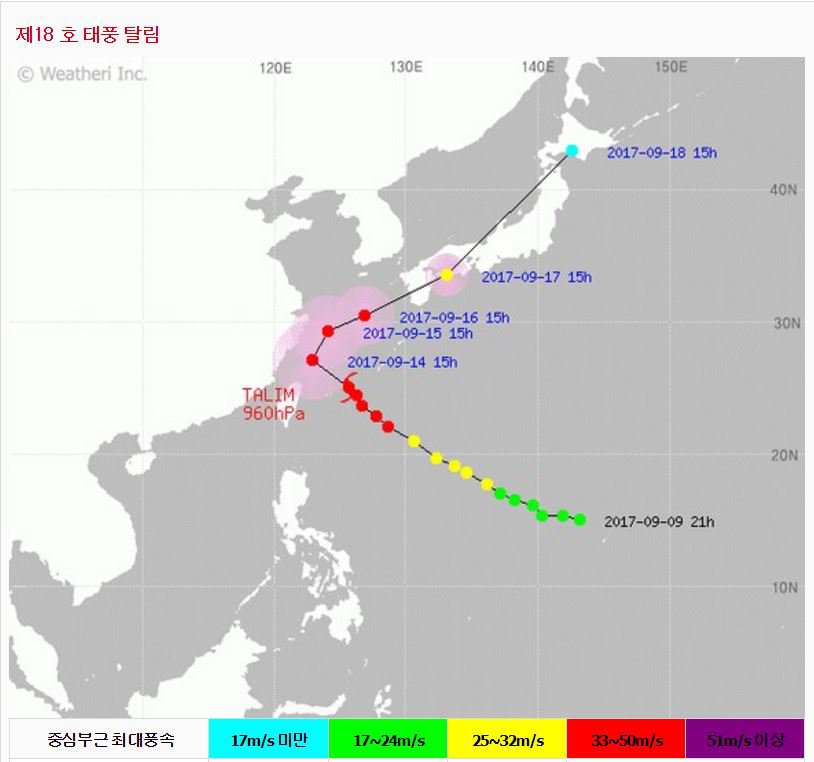 태풍 타림 예상 이동경로.