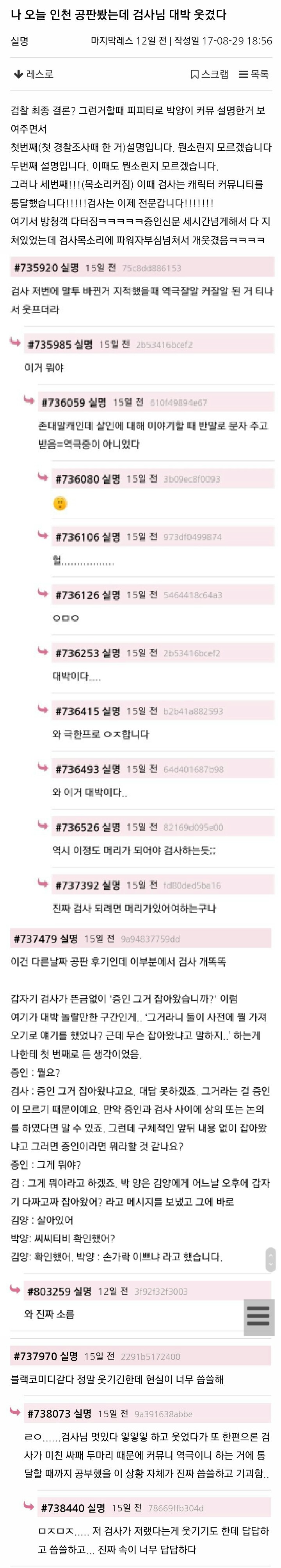 | Subject | 인천 살인마사건 공판 방청객의 검사썰.txt |