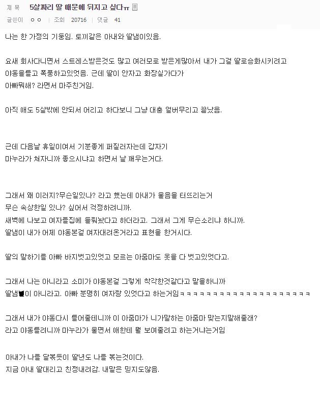 | Subject | 5살짜리 딸 때문에 뒤지고 싶다 |