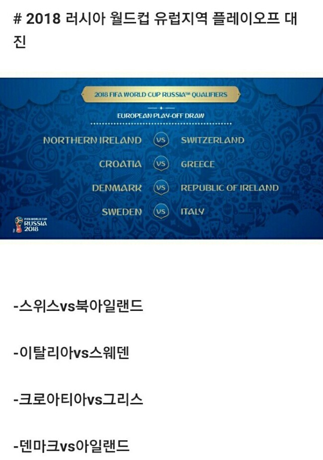 이탈리아나 스웨덴중 한팀은 월드컵을 못갑니다. 0