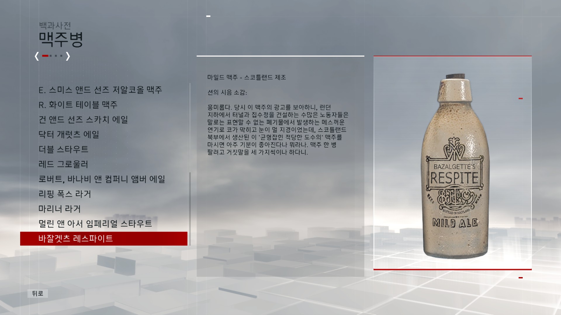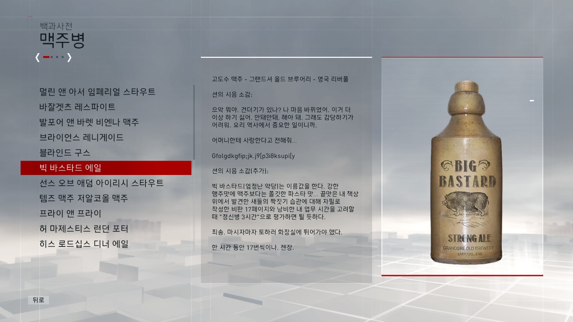 | Subject | 어떤 게임의 영국 맥주 시음기 |