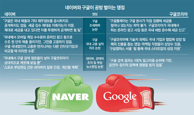 네이버: 구글 니넨 세금 똑바로내라! 구글: 네이버 검색어 조작...풉. 출처: 동아일보 0