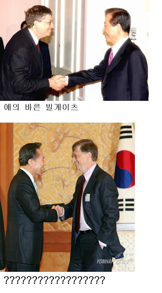 | Subject | 빌게이츠가 이명박과 주머니에 손 넣고 악수한 이유는? |