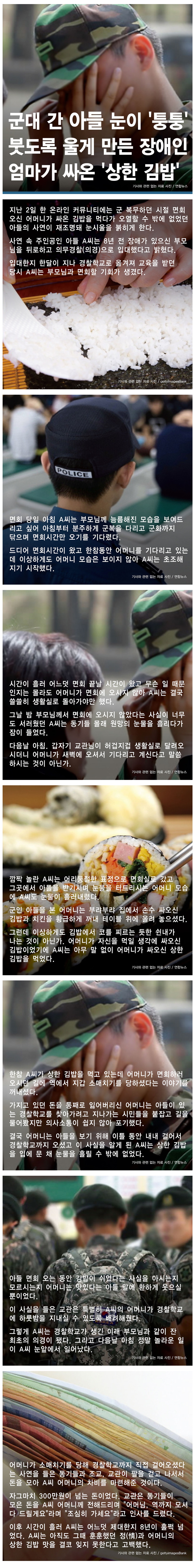 | Subject | 군대 간 아들 울게 만든 엄마가 싸온 상한 김밥.jpg |