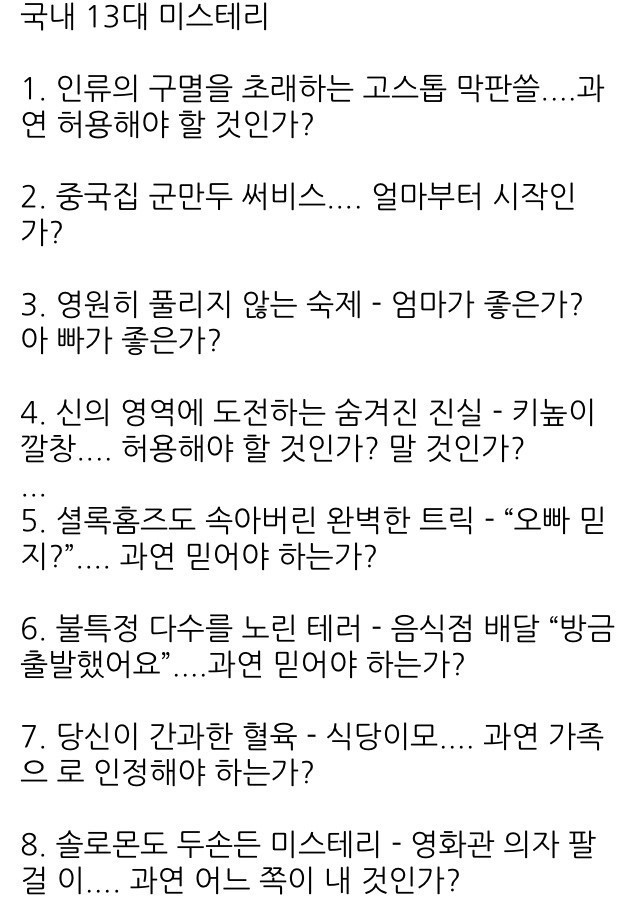 | Subject | 국내 13대 미스테리 |