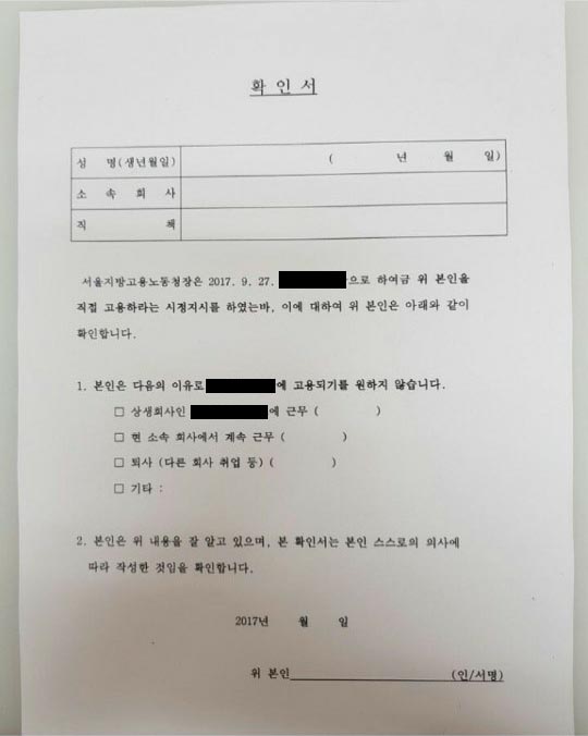 | Subject | 하청 근로자를 직접 고용하라는 시정지시가 내려왔다. |
