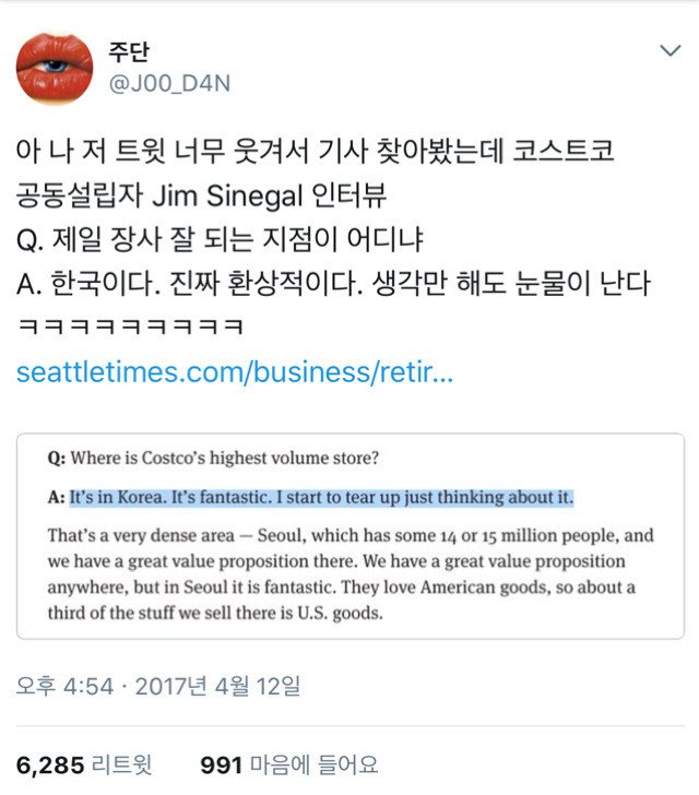 Subject   ??? : 한국만 생각하면 눈물이 난다.