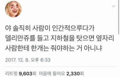 | Subject | 지하철에서 민폐인사람한테 일침 갑 |