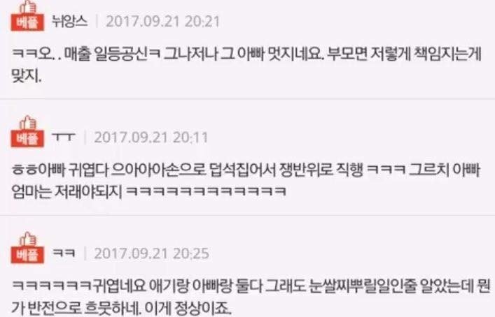 넷상에즌 무개념 엄빠 이야기들만 올라오는거고 현실엔 이런 엄빠가 훨씬 많죠. 근데 이거 엄마 몰래 부자간 모종의 거래는 아닐까... 데헷~ 3