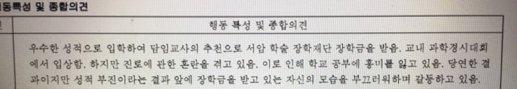 그러면 학생부 종합 평가에서 좋은 점수 얻지 못한다는 겁니다. 그래서 문제인거예요. 좋은 말만 써도 모자랄판에 저렇게 부정적인 얘기만 썼다면.