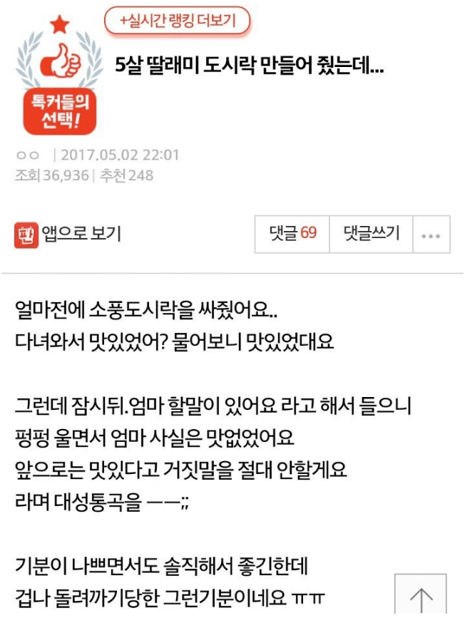28439 5살 딸과 엄마가 싸준 도시락 2 JUFAFA 18/01/21 3446 1