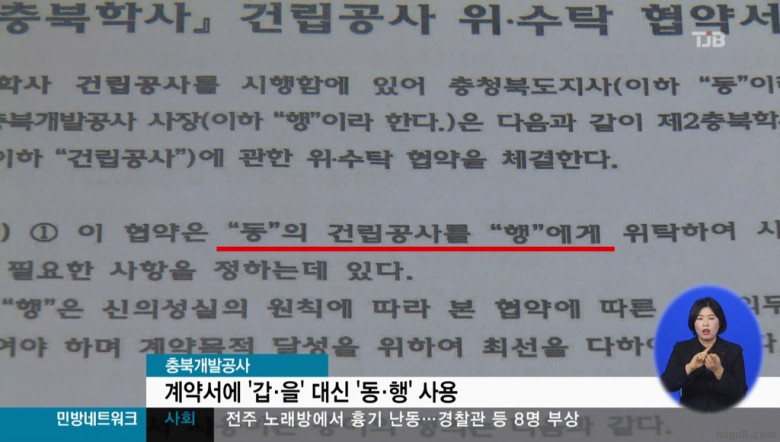 계약서에 갑을 대신 “동” “행”으로