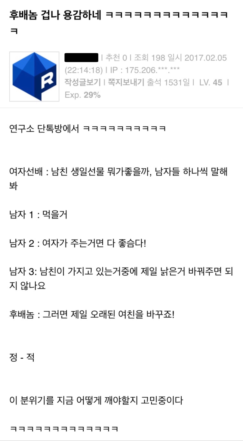 - 유머가 아닌 펌글, 영상 등 가볍게 볼 수 있는 글들도 게시가 가능합니다.