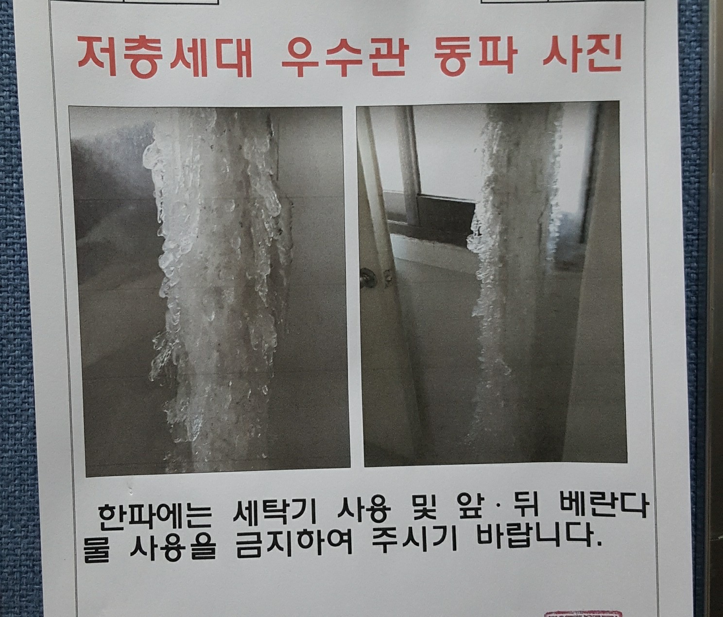| Subject | 저층세대 우수관 동파 사진 |