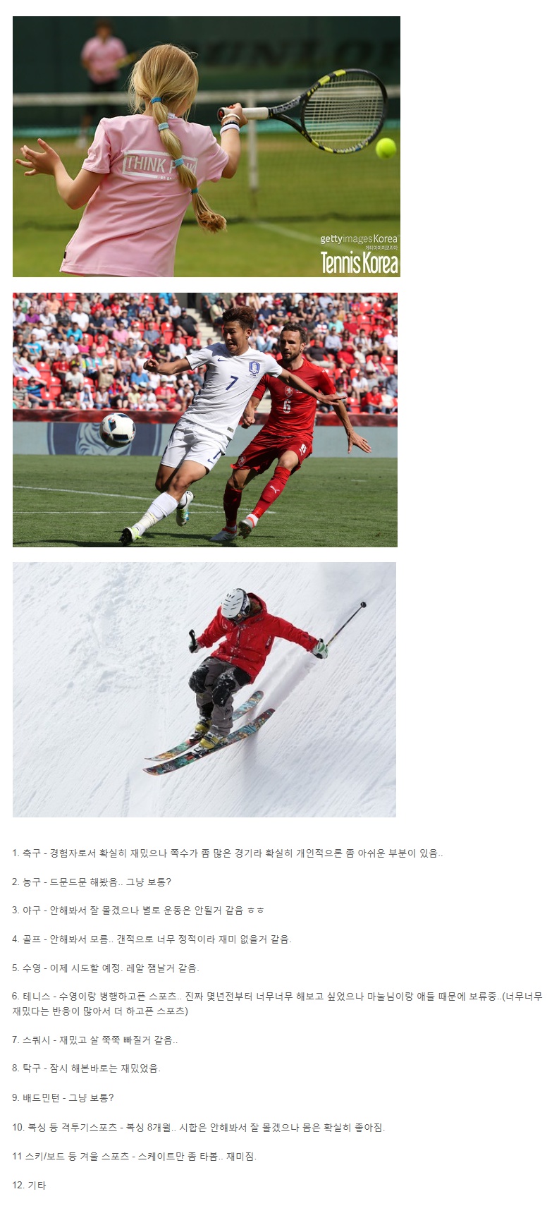 취미로 해봤던 스포츠 중 가장 재밌었던 것은?? 0