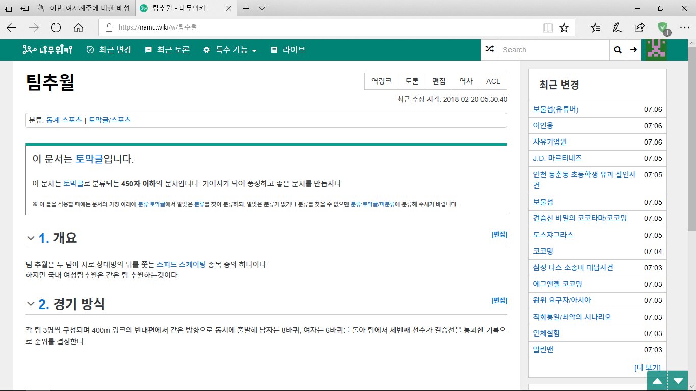 | Link #1 | https://namu.wiki/w/팀추월?rev=5 |