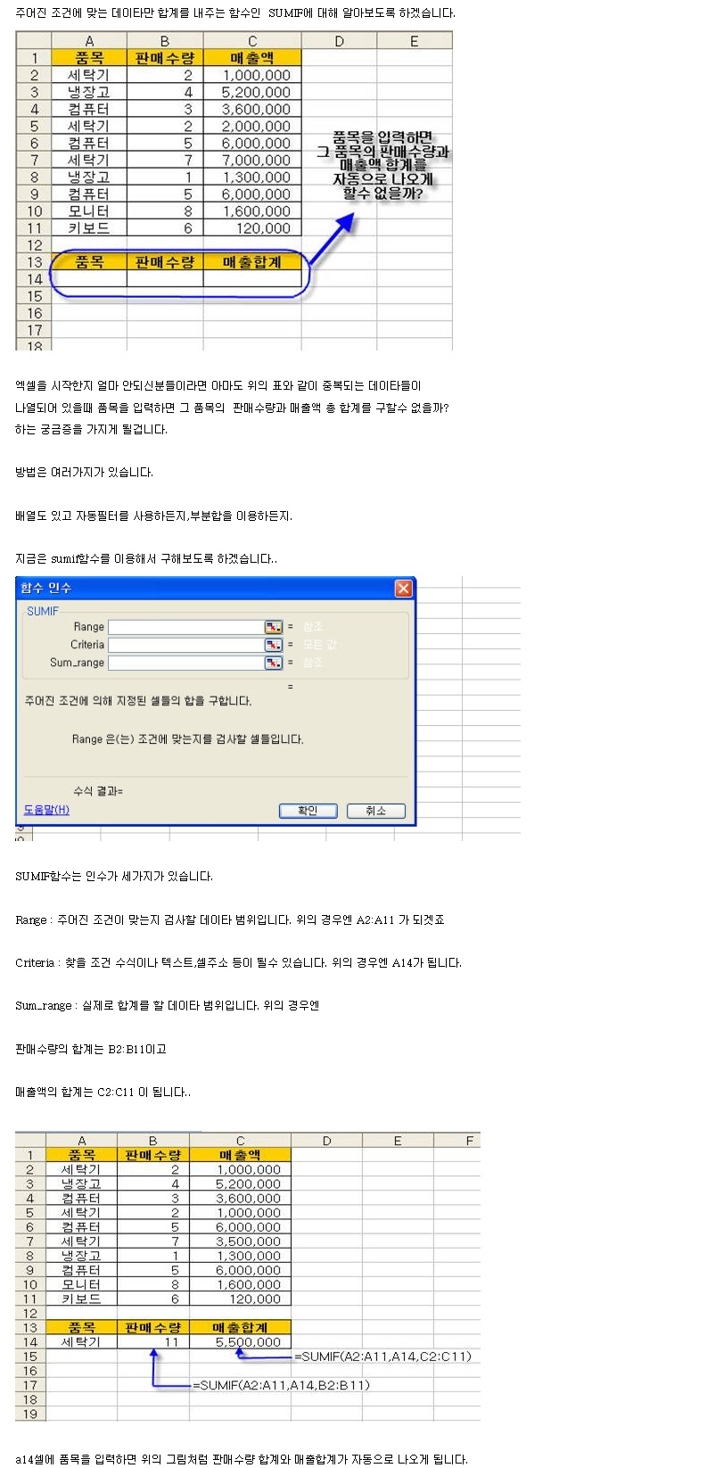 Subject   [엑셀 37] 조건부 합계함수 SUMIF.jpg