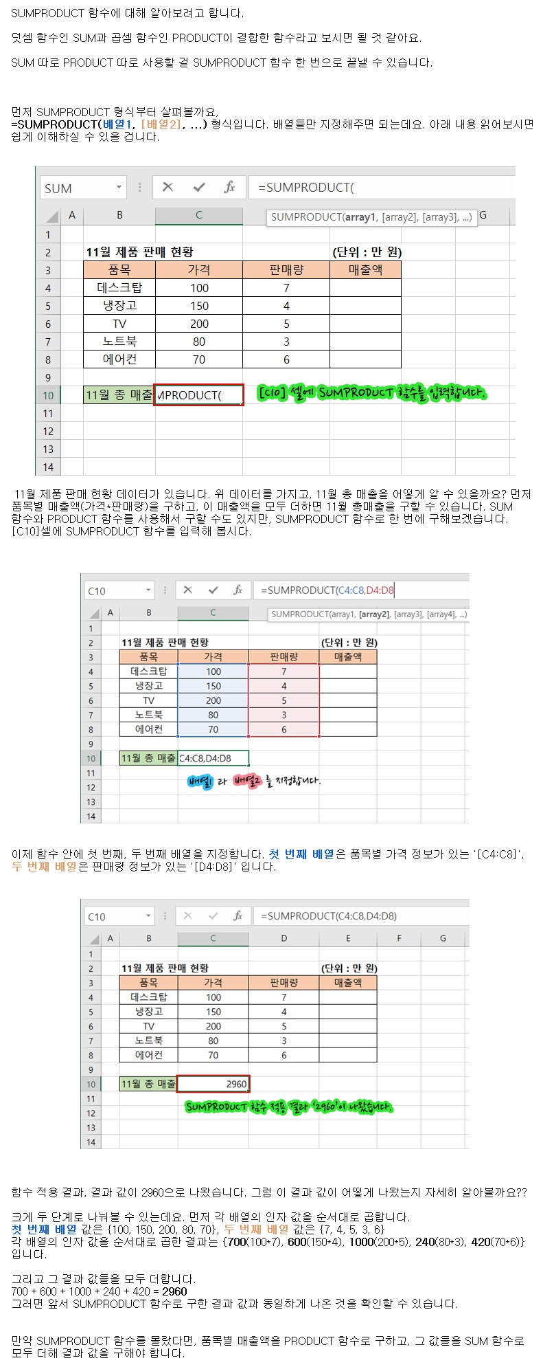 Subject   [엑셀 38] SUMPRODUCT 함수로 곱한 값들의 합 구하기.jpg