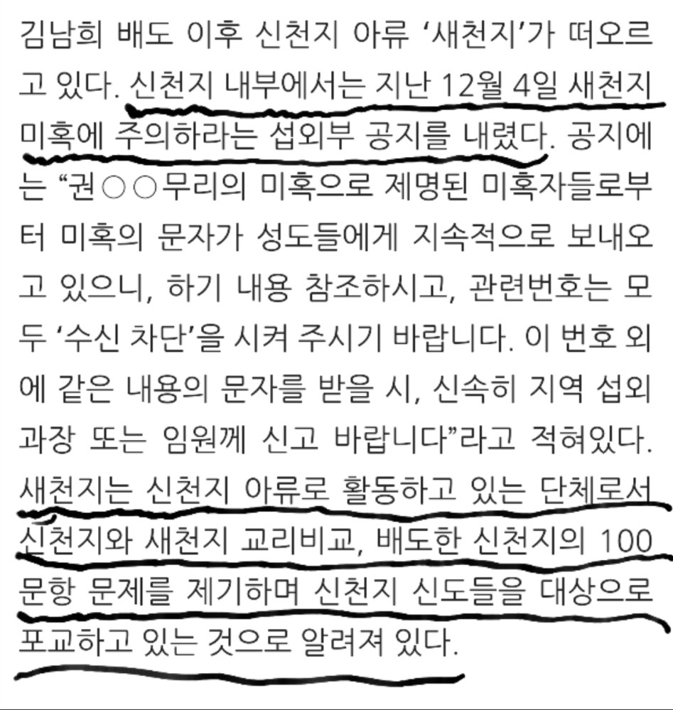신천지 내부에서 [새천지]라는 아류가 생겨났다고 합니다.