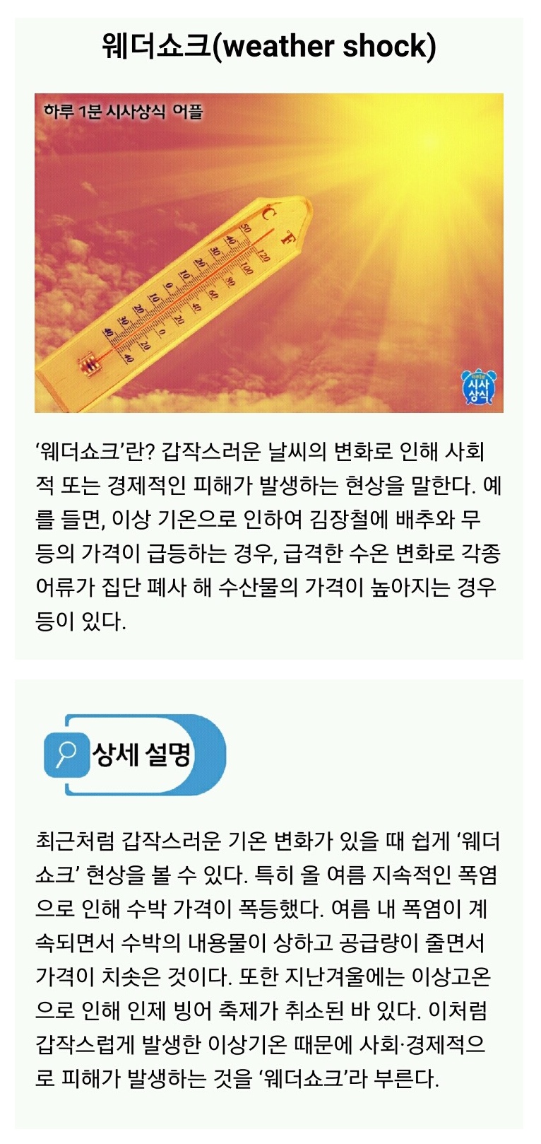 | Subject | 하루 1분 시사상식 132 - 웨더쇼크(weather shock) |