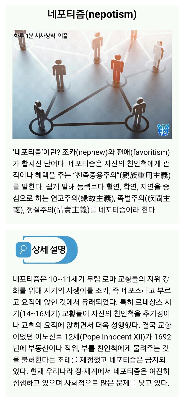 | Subject | 하루 1분 시사상식 139 - 네포티즘(nepotism) |