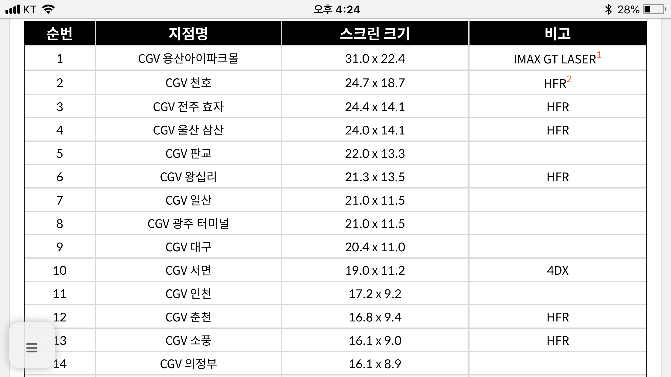 30490 전국 CGV IMAX 정보 9 tannenbaum 18/04/25 9553 0