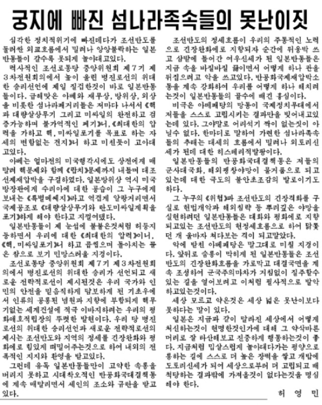 | Subject | 오늘도 일본 디스에 여념이 없는 로동신문.txt |