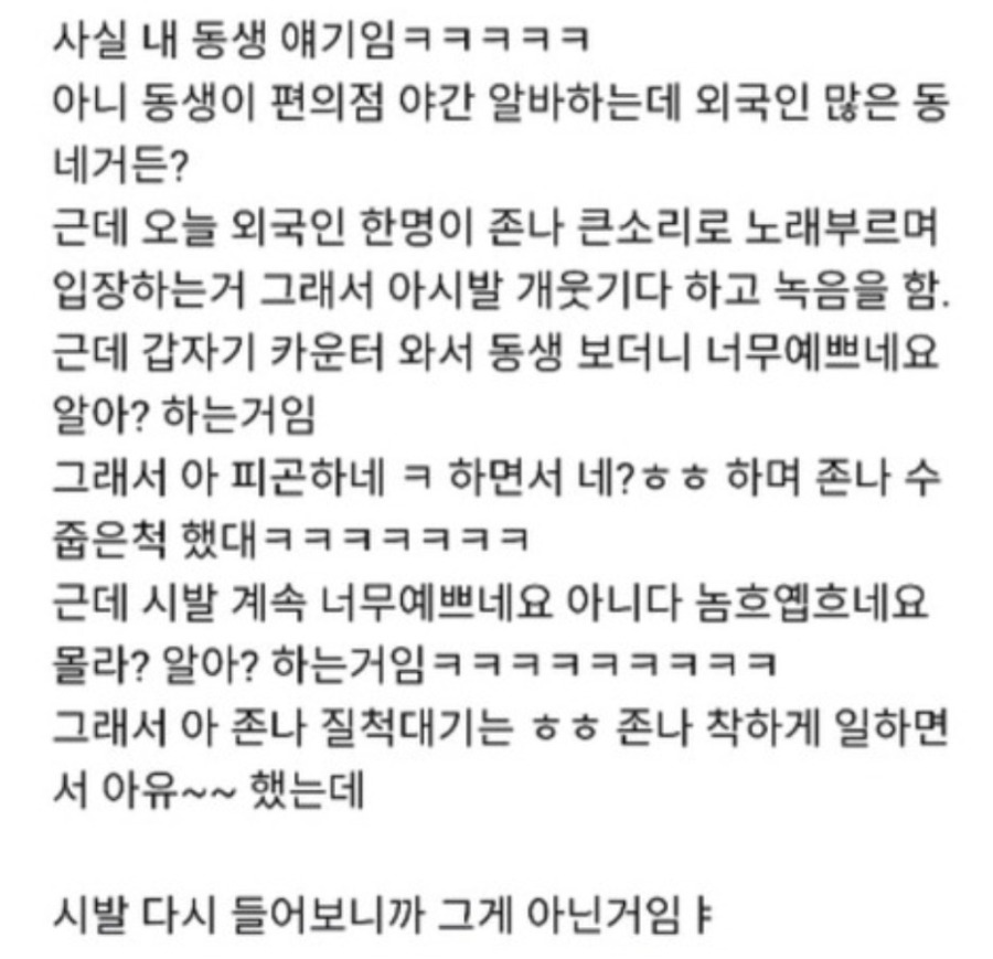 Subject   외국인한테 한국말로 넘예쁘네 소리 들은 썰.JPG