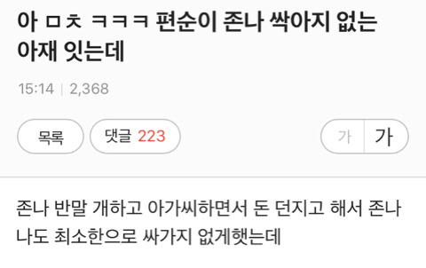 | Subject | 아 ㅁㅊ ㅋㅋㅋ 편의점에 존나 싸가지 없는 아재 잇는데 |