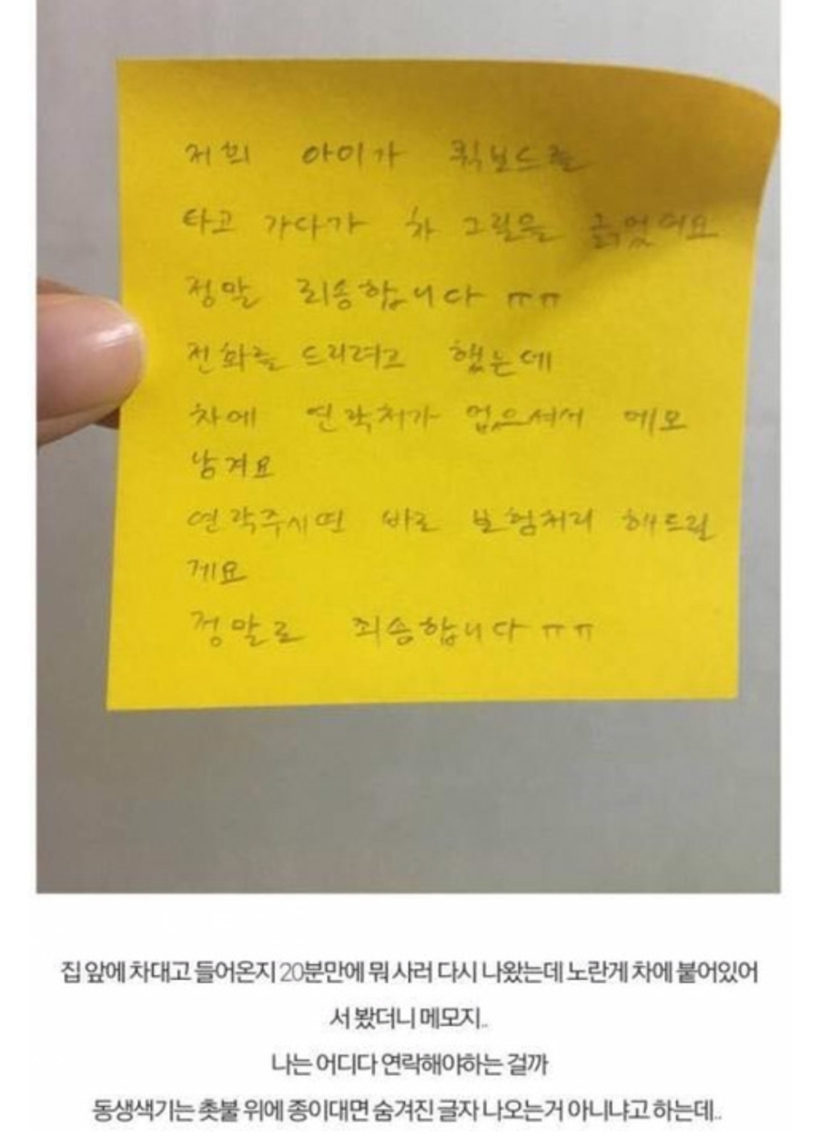 | Subject | 아이가 차를 긁어서 쪽지를 남깁니다.jpg |