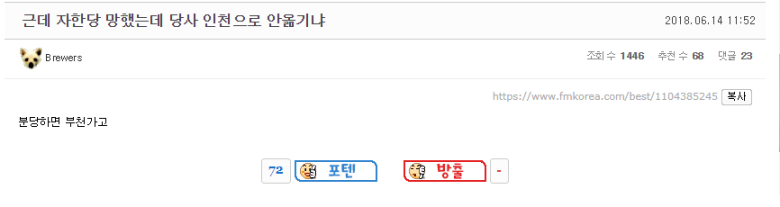 | Subject | 자한당 망했는데 당사 인천으로 안 옮기냐? |
