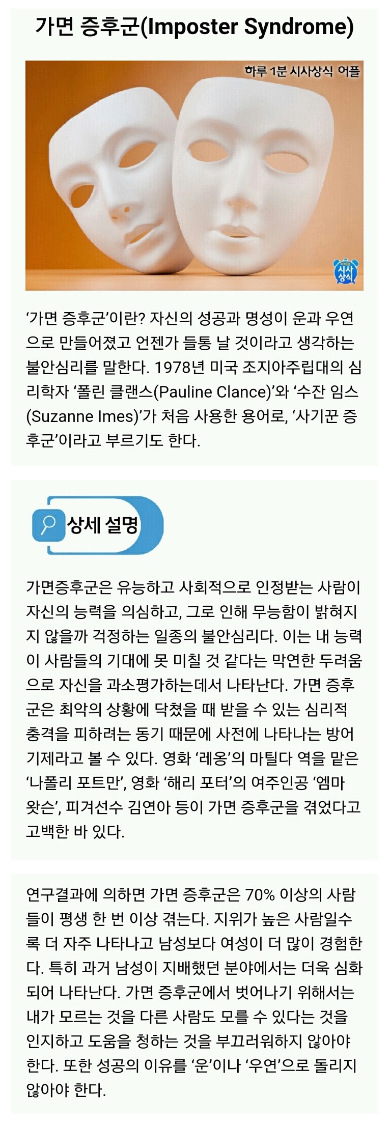 하루 1분 시사상식 - 가면 증후군(Imposter Syndrome) 0