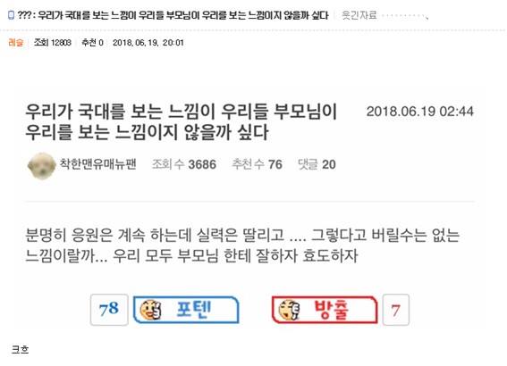 | Subject | 우리가 축구 국대를 보는 심정 |
