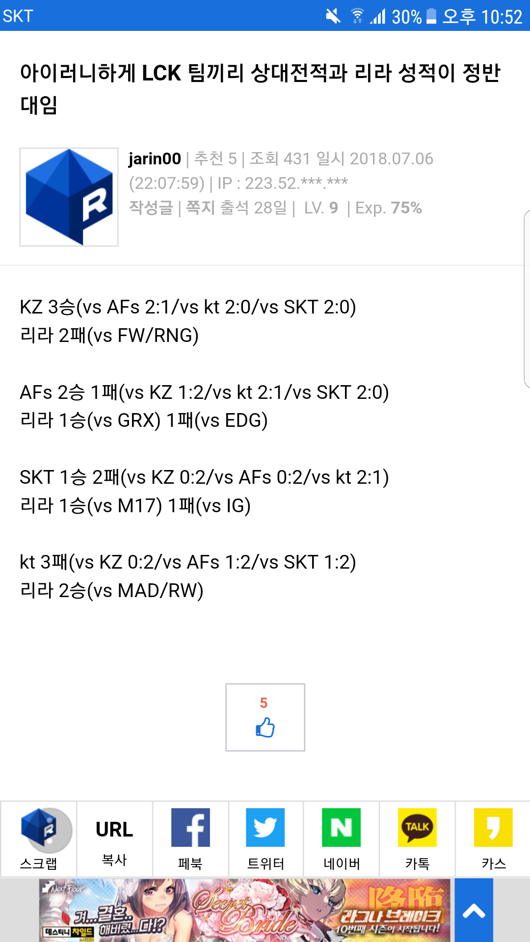 | Subject | 리라 출전한 LCK 팀들과의 상대전적과 리라 성적 비교 |
