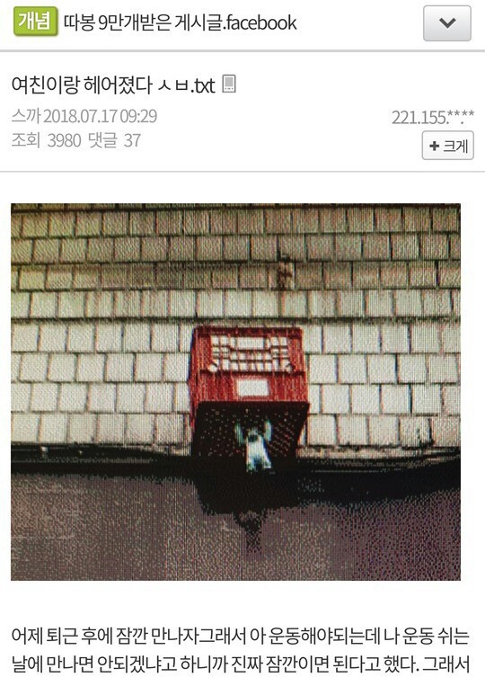 | Subject | 여친과 헤어진 헬갤러 |