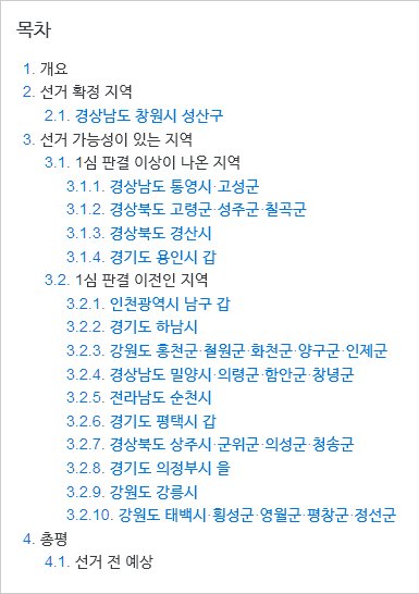 | Link #1 | https://namu.wiki/w/2019%EB%85%84%20%EC%9E%AC%EB%B3%B4%EA%B6%90%EC%84%A0%EA%B1%B0 |