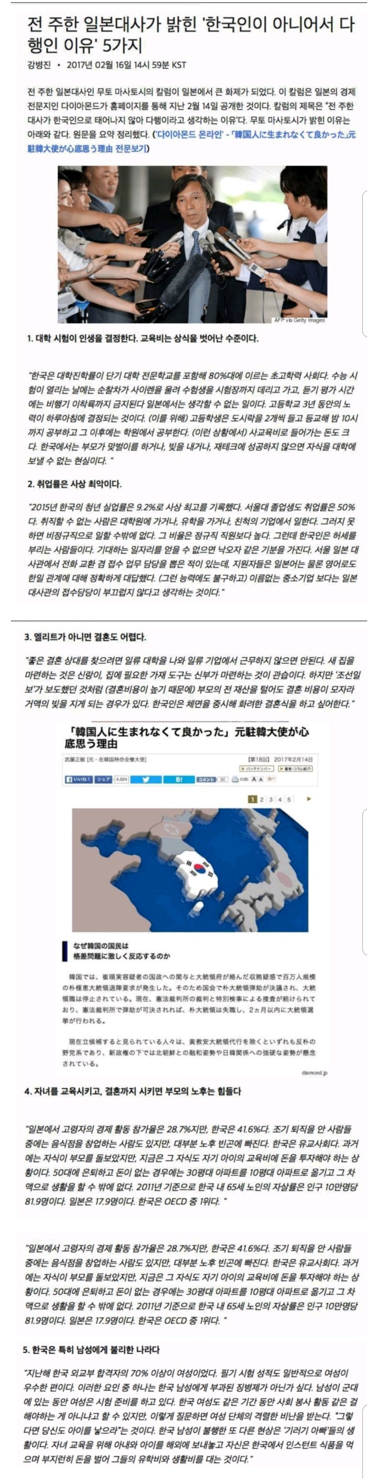 | Subject | 전 주한 일본대사가 밝힌 '한국인이 아니어서 다행인 이유 5가지'.jpg |