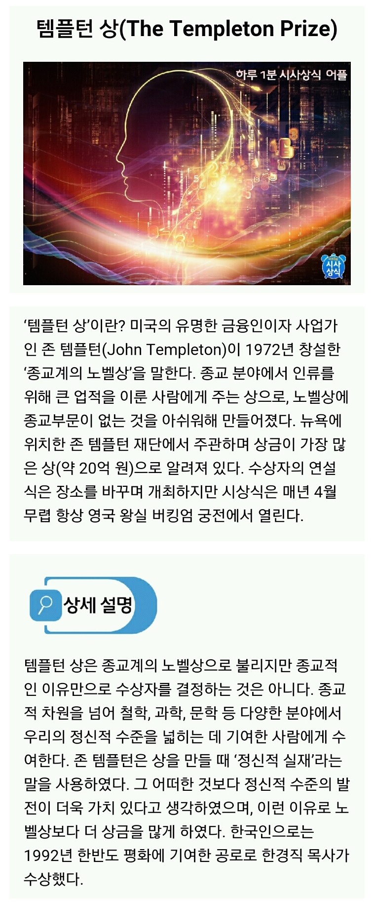하루 1분 시사상식 - 템플턴 상(The Templeton Prize) 1