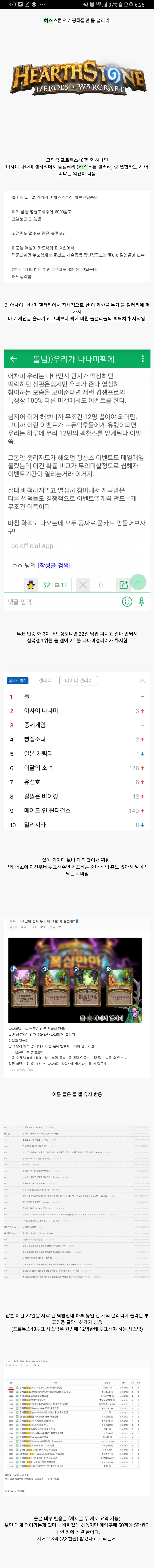 1. 적은 분량과 낮은 순위에 초조해진 아사이 나나미 팬이 투표 인증해주면 하스스톤 팩을 주겠다는 이벤트 진행