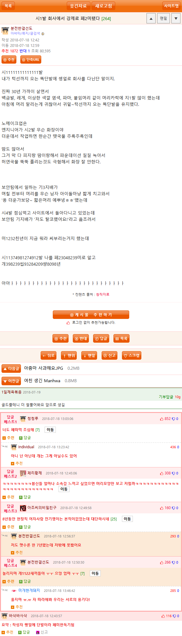 | File #1 | Screenshot_2018_07_30_시1발_회사에서_강제로_페2미됐다_웃긴대학_웃긴자료.png (87.1 KB), Download : 116 |