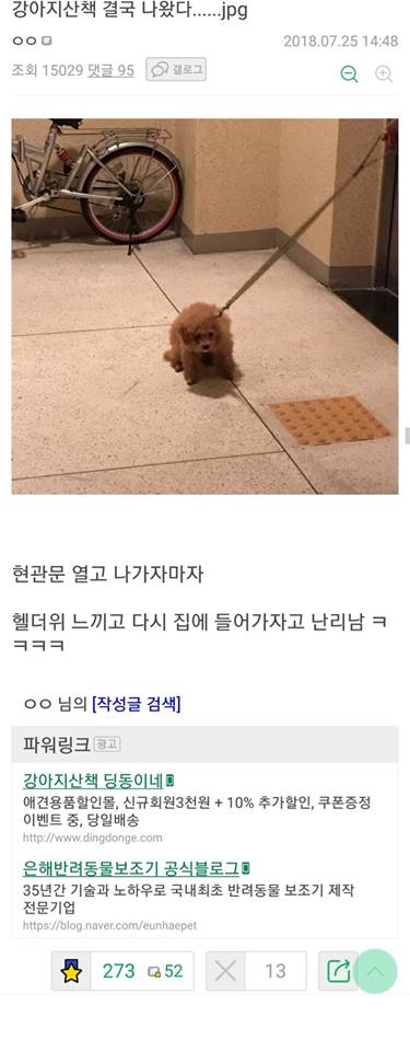 | Subject | 산책 가기 싫은 댕댕이.. ㅋㅋㅋㅋ |