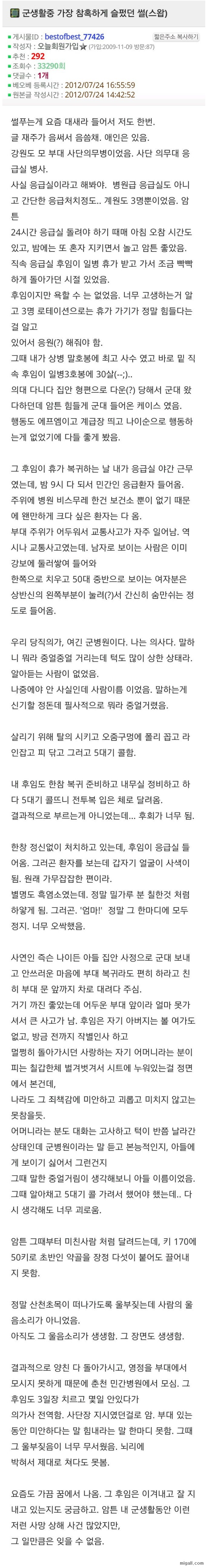 | Subject | [무거움] 군생활 중 가장 참혹하게 슬펐던 이야기 |
