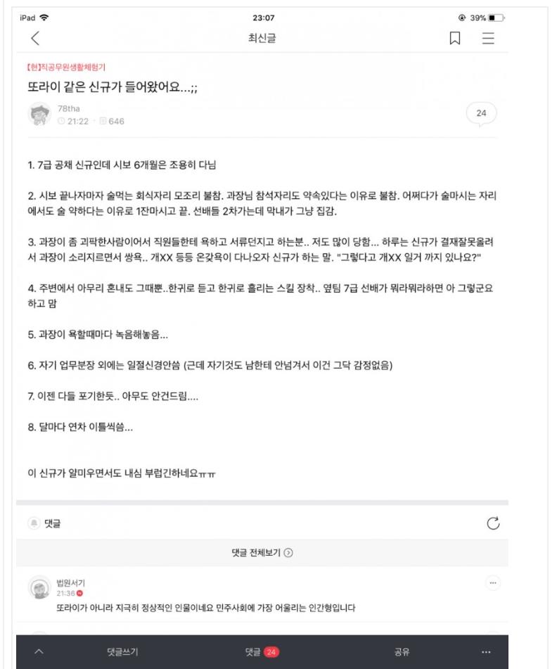 | Subject | 또라이 신입. |