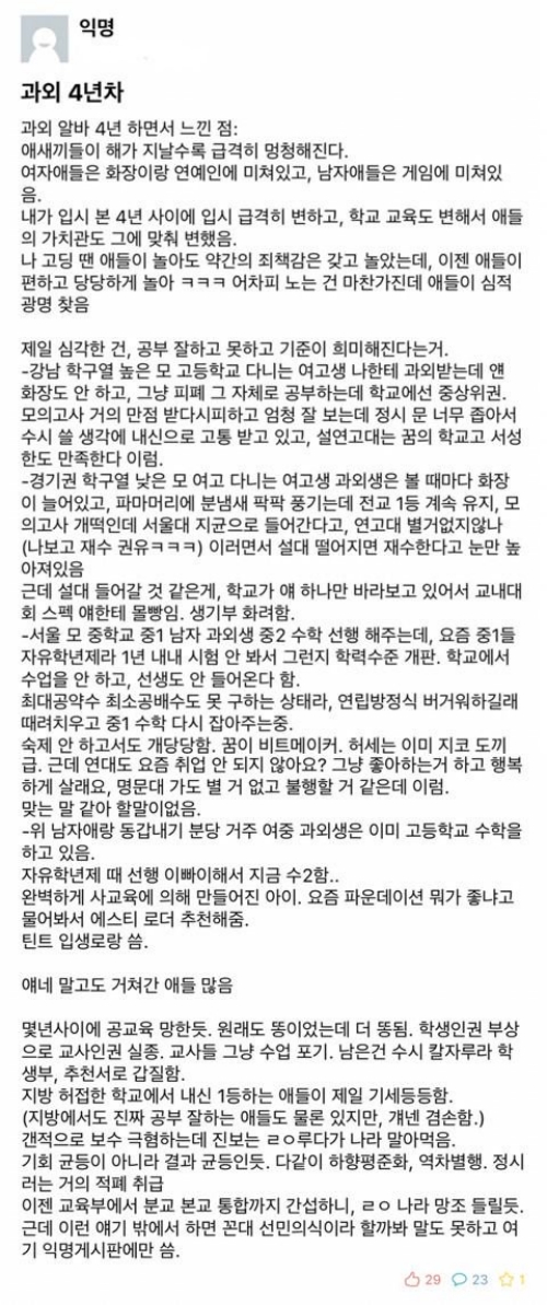 Subject   연세대 에타에 올라온 과외 4년차 후기