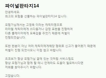 | Subject | 어떤 게임의 계정 정지 사유 |